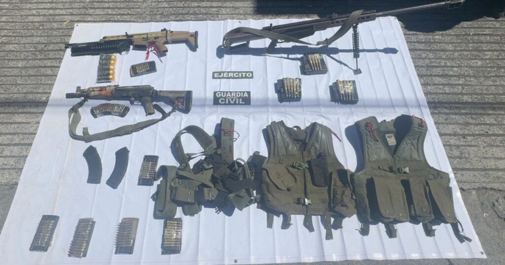 Los ahora indiciados portaban un arma calibre 50, así como dos fusiles de distintos calibres; además de 122 cartuchos útiles, 12 cargadores, cinco granadas de fragmentación y equipo táctico que fue resguardado. Todo lo decomisado y los detenidos fueron presentados ante la Fiscalía General de la República (FGR), a fin de realizar las indagatorias correspondientes.