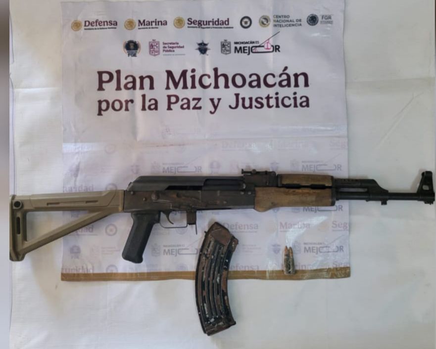 Mientras que en el municipio de Múgica, las autoridades decomisaron otra arma de fuego calibre 7.62X39, un casco y ropa táctica. En otro hecho, en Zamora fueron detenidos dos hombres en posesión de una escopeta y envoltorios que contenían sustancia granulada con las características propias de la metanfetamina.