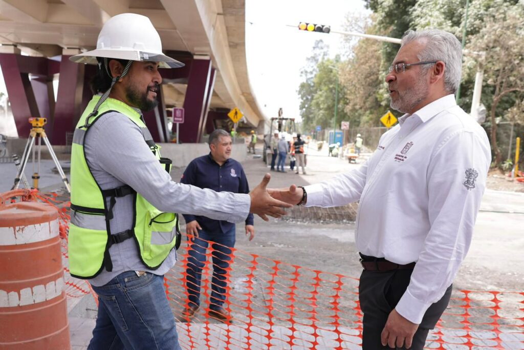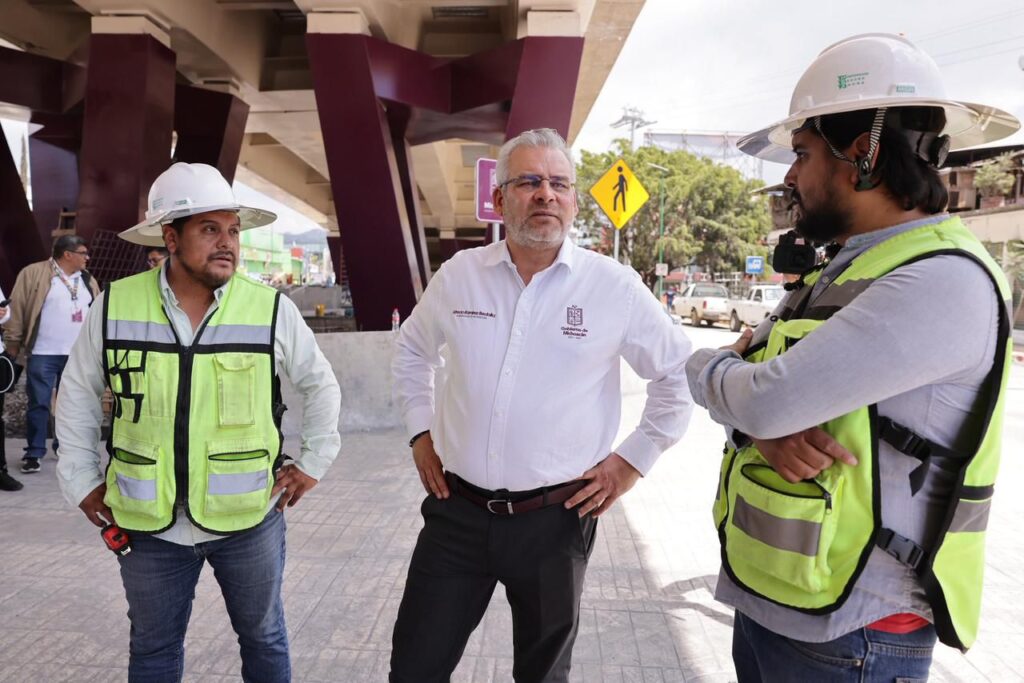 Uruapan, Michoacán, 24 de marzo de 2026.- En su recta final de construcción, el gobernador Alfredo Ramírez Bedolla supervisó los últimos detalles del puente superior vehicular “La Hielera”, en Uruapan, que a su propuesta llevará el nombre del expresidente municipal, Carlos Manzo, y que será inaugurado de manera oficial el sábado 28 de marzo.