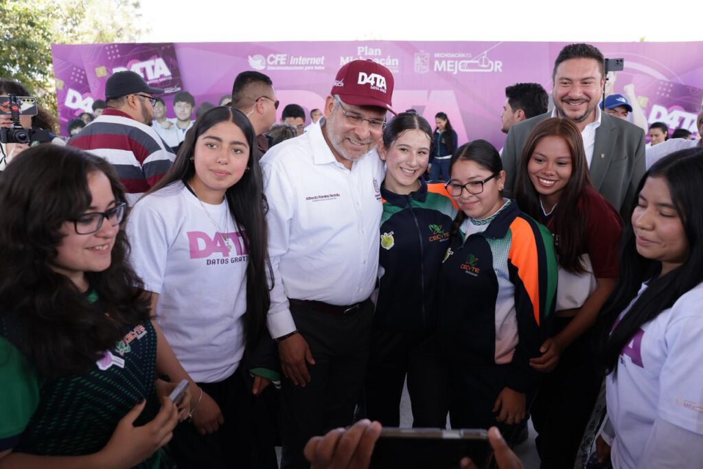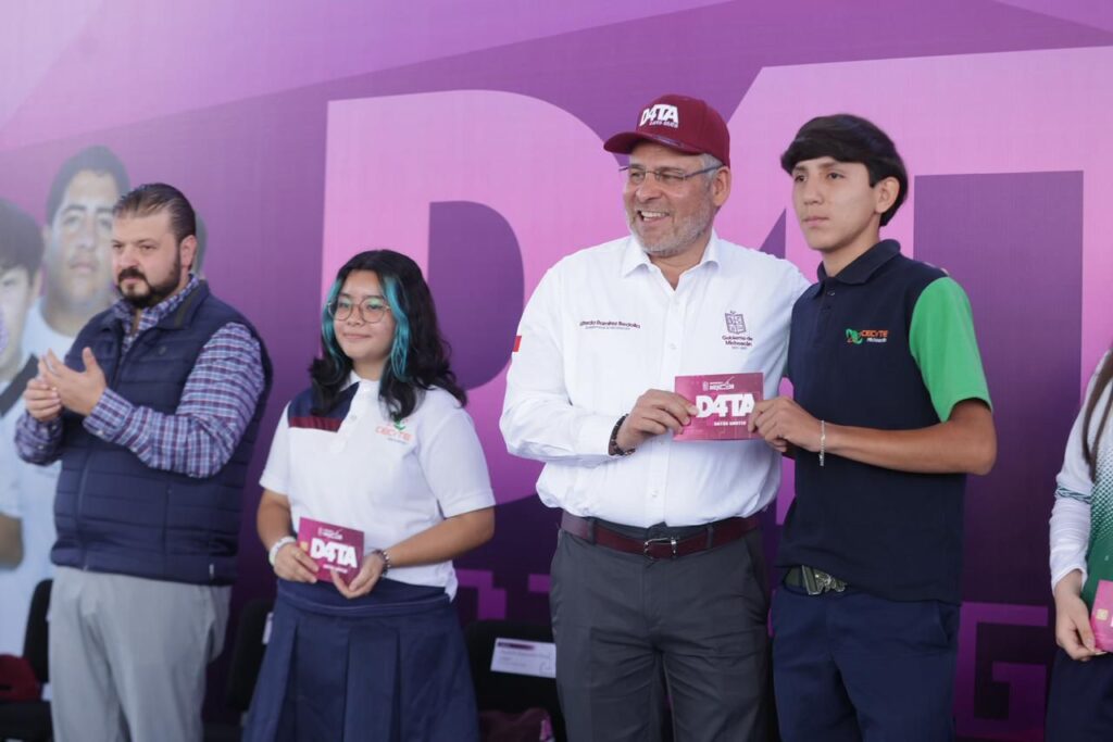 Informó a las y los estudiantes beneficiados que D4TA es posible gracias a la donación de 200 mil chips que hizo la Comisión Federal de Electricidad (CFE), como parte del Plan Michoacán por la Paz y la Justicia; mientras que su gobierno absorberá el pago de 116 mil planes de internet para los estudiantes registrados de preparatorias, institutos tecnológicos y universidades públicas del estado.