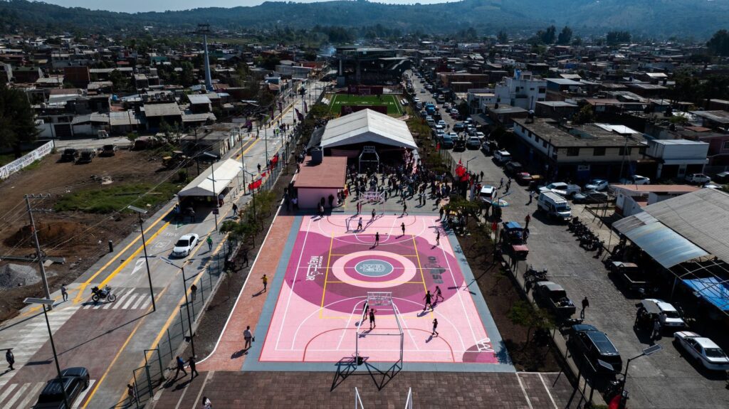 Uruapan, Michoacán, 19 de diciembre de 2025.- El Plan Michoacán por la Paz y la Justicia se está haciendo efectivo y como prueba de ello la secretaría de Desarrollo Urbano y Movilidad, Gladyz Butanda Macías, rehabilitó tres calles y una unidad deportiva en la colonia Antorchistas de Uruapan, obras complementarias al teleférico.