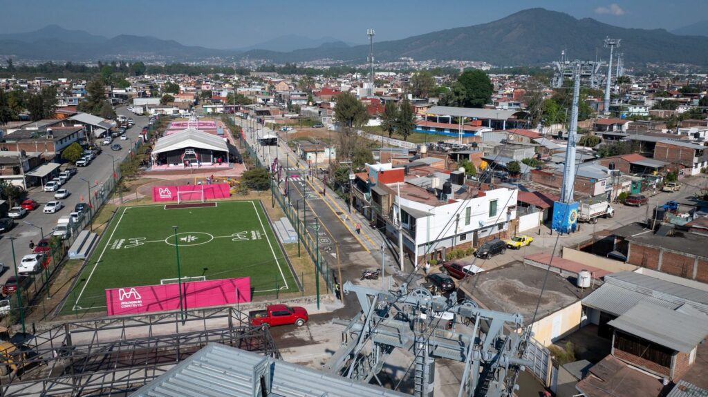 “Gracias al proyecto integral del teleférico y como resultado de gestiones del Movimiento Antorchista, tendrán tres calles totalmente rehabilitadas, así como una unidad deportiva que fomentará la sana recreación de las infancias y juventudes, en apego a las acciones que contempla el Plan Michoacán por la Paz y la Justicia”, señaló ante por lo menos mil uruapenses que se vieron beneficiados con estas obras.