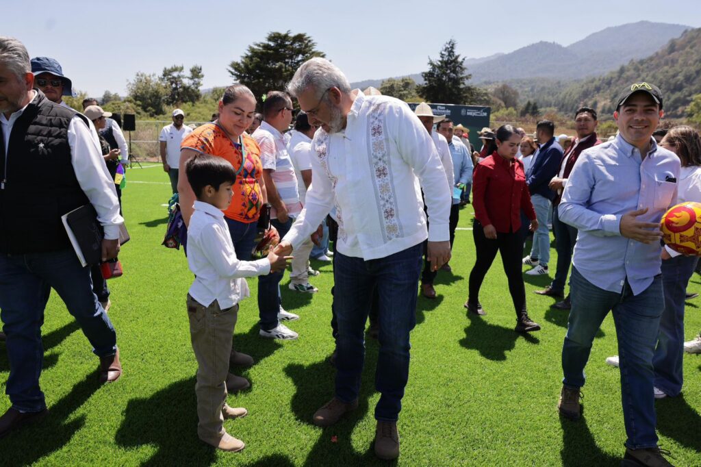 El mandatario informó que suman 48 canchas construidas en todo el estado, con recursos del Fondo para el Fortalecimiento para la Paz (Fortapaz), con las que también se promueve la sana convivencia de niñas, niños y jóvenes, como una herramienta para avanzar en la reconstrucción del tejido social.