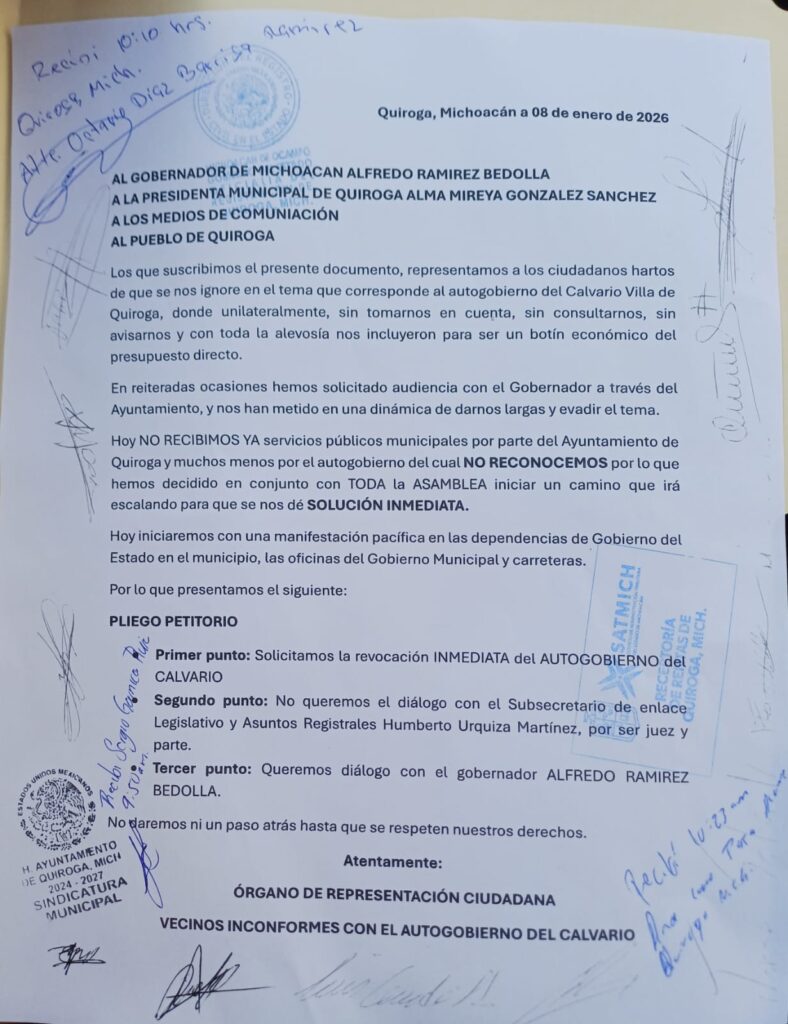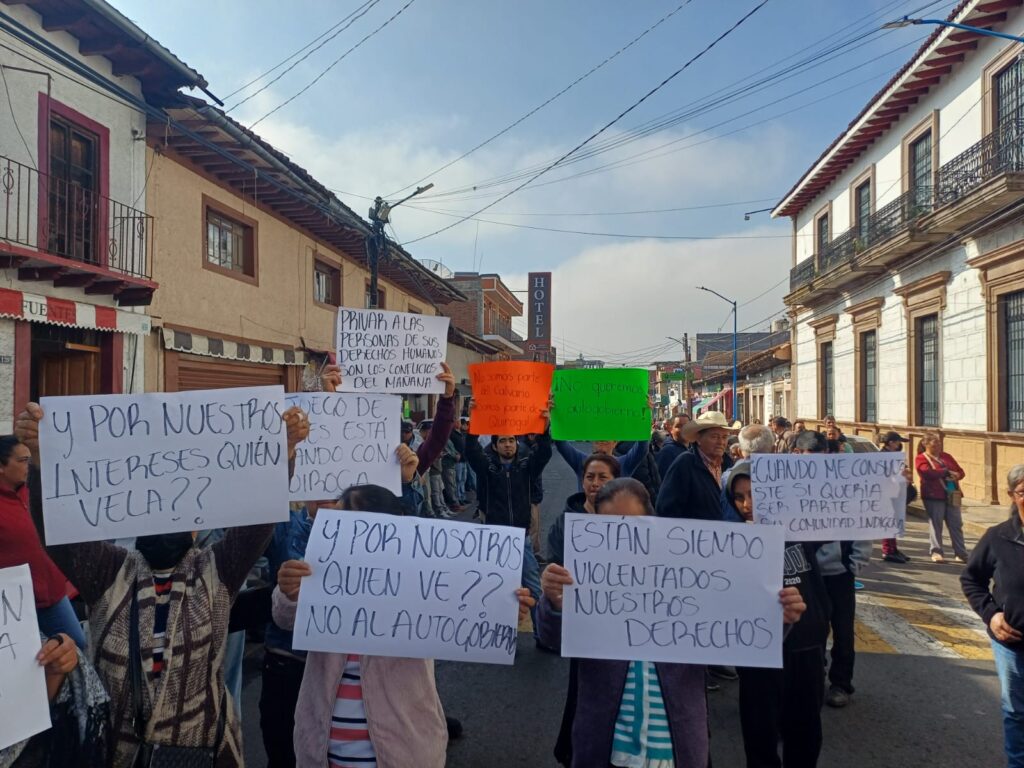 De acuerdo con los inconformes, la principal molestia radica en que no se les preguntó si estaban de acuerdo con adoptar el esquema de autogobierno, además de denunciar que, bajo este modelo, no se están brindando los servicios públicos básicos que corresponden a la comunidad.