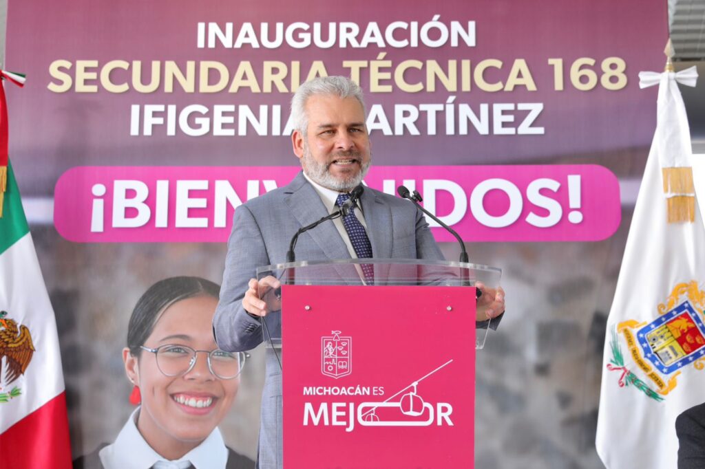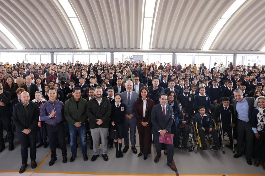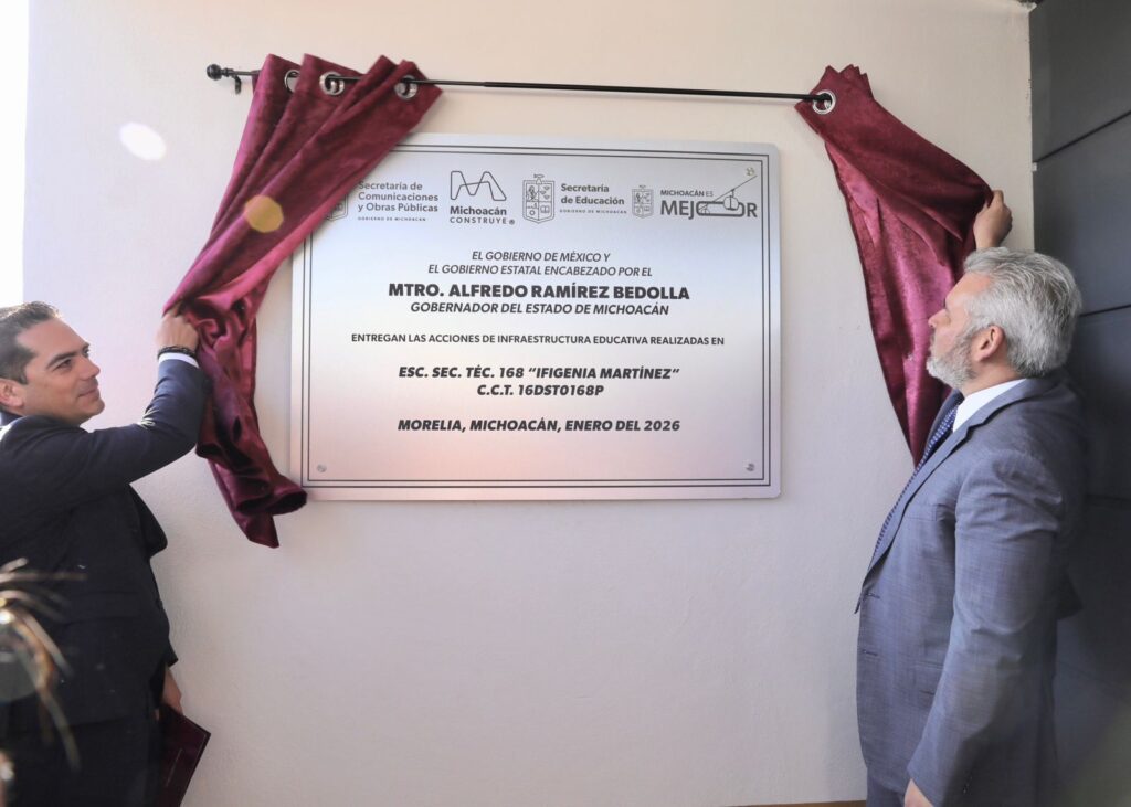 Morelia, Michoacán, 12 de enero de 2026.- Para el impulso y mejora de la educación de más de 800 alumnos de Villas del Pedregal, el gobernador Alfredo Ramírez Bedolla inauguró la Escuela Secundaria Técnica 168 “Ifigenia Martínez”, obra que forma parte del complejo educativo más grande que se construye en Michoacán con recursos estatales.