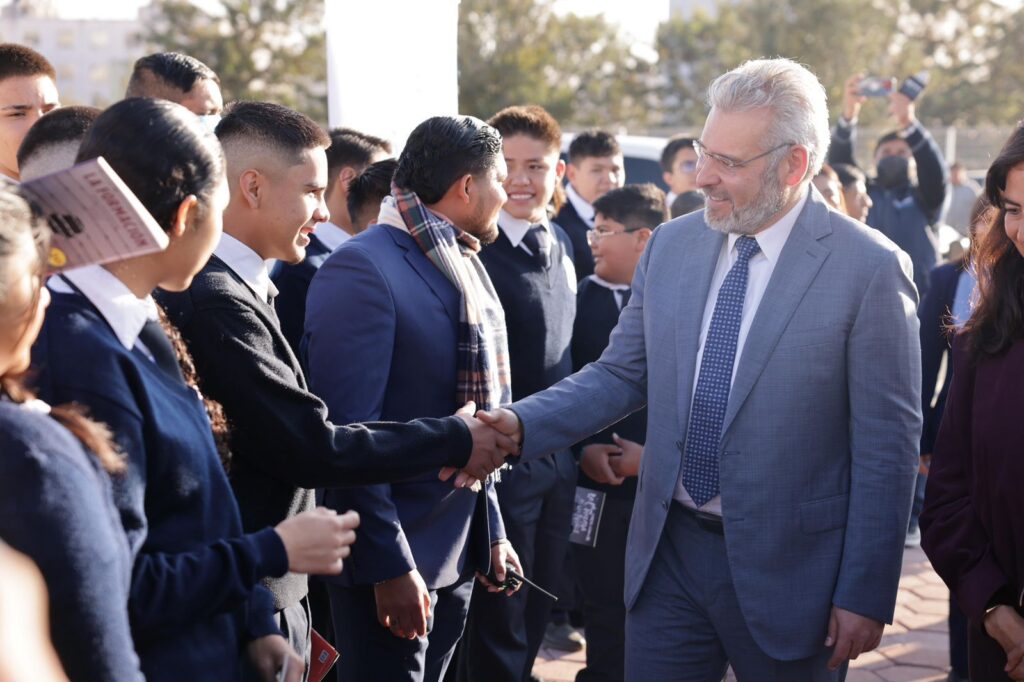“Hoy es un día de júbilo, un día de emoción, porque van a estrenar aulas, talleres, cooperativa para desayunar; van a tener una escuela de primer nivel”, señaló el mandatario tras puntualizar una inversión de 47.2 millones de pesos de recursos 100 por ciento estatales en esta inmueble.