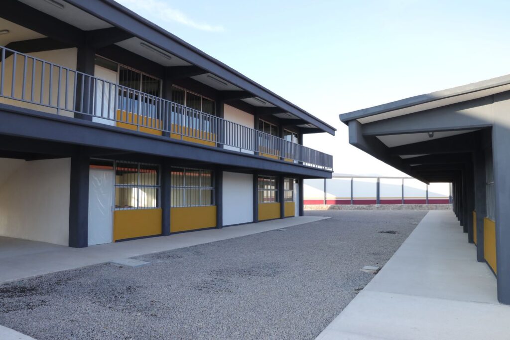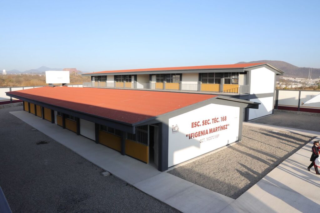En el caso de la Secundaria Técnica 168, agregó que se construyeron 16 aulas, barda perimetral, andadores, jardineras, plaza cívica, cancha de usos múltiples, comedor, laboratorio, aula de medios, arcotecho y pórtico de acceso con lo que se permitirá ampliar la matrícula de este plantel.