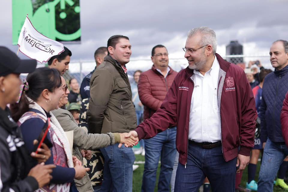 Morelia, Michoacán, 1 de enero de 2026.- Como parte de la estrategia de prevención del delito y recuperación de espacios públicos para fortalecer la convivencia de las familias, el Gobierno que encabeza el mandatario Alfredo Ramírez Bedolla construyó 40 canchas de fútbol 7 en 41 municipios.