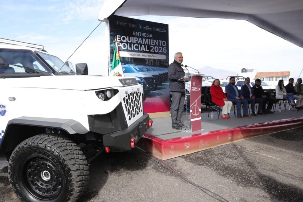 Explicó que los dos camiones blindados, son como los que utiliza el Ejército Mexicano, para dar respuesta a los grupos criminales. “Nosotros tenemos que también responder con una capacidad de protección a nuestros elementos y poder, en el terreno, vencer a la delincuencia. Tenemos que equipar y cada vez estar mejor preparados para enfrentar los retos que significa la delincuencia en Michoacán y en México”, indicó.