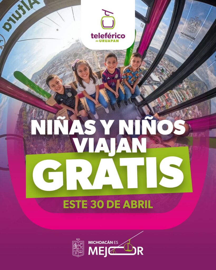 Morelia, Michoacán, 28 de abril de 2026.- La secretaria de Desarrollo Urbano y Movilidad, Gladyz Butanda Macías, anunció que este 30 de abril, con motivo del Día de la Niñez, el acceso al teleférico de Uruapan será gratuito para todas las niñas y niños.