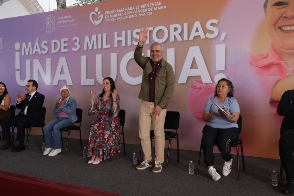 Morelia, Michoacán, 26 de marzo de 2026.- En un acto que reafirma el compromiso de la actual administración con la salud y el bienestar social, el gobernador Alfredo Ramírez Bedolla encabezó la entrega de apoyos del Programa Mujeres con Cáncer de Mama y/o Cervicouterino Invasor, alcanzando la cifra histórica de 3 mil michoacanas beneficiadas desde la creación del programa.