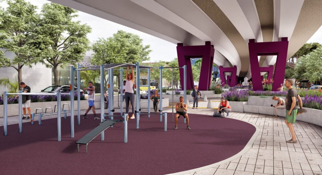 Más allá de su función vial, este proyecto construido por el Gobierno de Michoacán, apuesta por la convivencia ciudadana con un bajopuente de dos mil 627 metros cuadrados. Este espacio se convertirá en un centro de actividad física y recreación que integrará un skatepark, gimnasio al aire libre y juegos infantiles. Además, se garantiza la tranquilidad de los usuarios mediante cruces peatonales seguros e iluminación con tecnología solar LED.