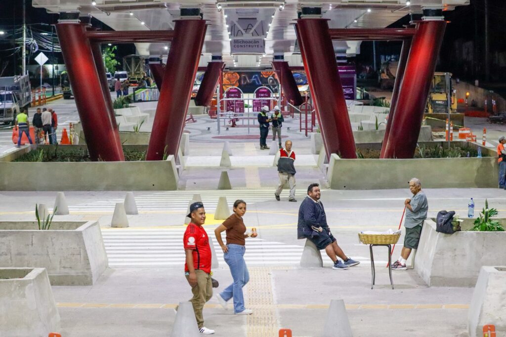 Morelia, Michoacán, 15 de junio de 2025.- La iluminación en espacios públicos y vialidades es una medida indispensable de seguridad, por ello, el puente superior vehicular Paso Catrinas y su bajopuente cuentan con 154 luminarias que contribuyen a prevenir accidentes e incidentes delictivos durante el tránsito nocturno en la carretera Morelia-Quiroga, frente al fraccionamiento Villas del Pedregal.