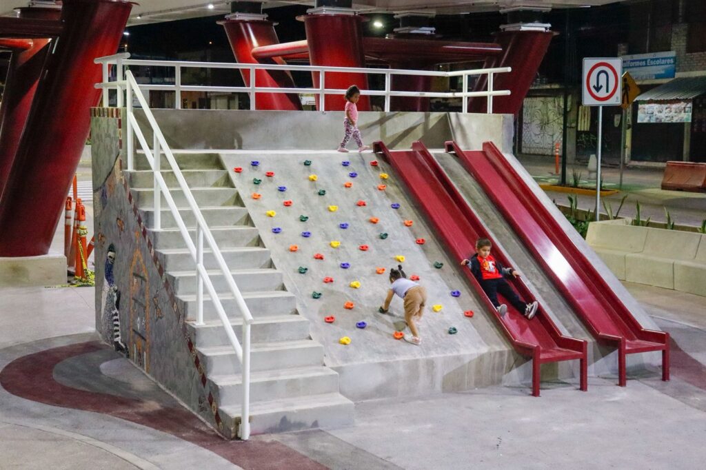 También los espacios públicos como el skatepark, parque canino, gimnasio inclusivo, rocódromo y los juegos infantiles que componen el bajopuente, pueden utilizarse en horarios extendidos y no solamente cuando hay luz natural, vigilados permanente con cámaras de videovigilancia enlazadas al C5i, en caso de cualquier percance.