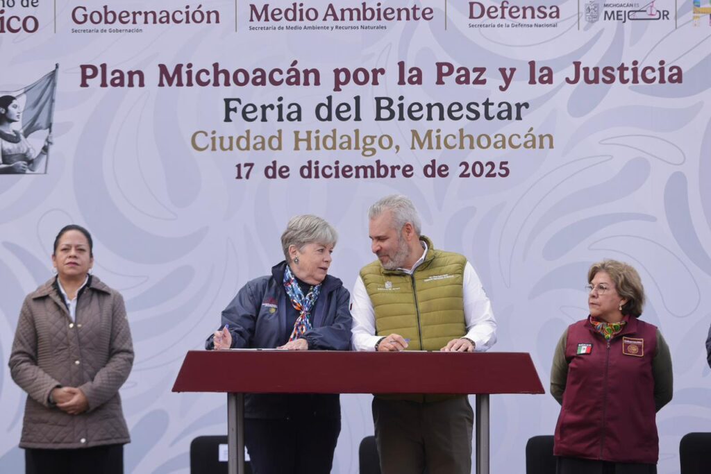 Hidalgo, Michoacán, 17 de diciembre de 2025.- Para concretar las acciones y compromisos en materia forestal establecidos dentro del Plan Michoacán por la Paz y la Justicia, el gobernador Alfredo Ramírez Bedolla realizó la firma del convenio de coordinación con la secretaria de Medio Ambiente y Recursos Naturales (Semarnat), Alicia Isabel Adriana Bárcena Ibarra y con el titular de la Comisión Nacional Forestal (Conafor), Sergio Humberto Graf Montero.