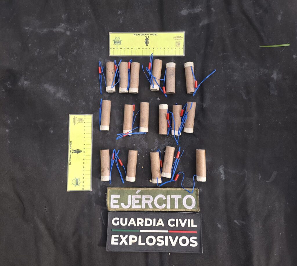 Uruapan, Michoacán, 15 de junio del 2025.- En seguimiento a las acciones operativas para la localización y desactivación de artefactos explosivos en la entidad, elementos de las secretarías de Seguridad Pública (SSP) y de la Defensa Nacional (Defensa), lograron desactivar 17 explosivos de pirotecnia en el municipio de Uruapan.