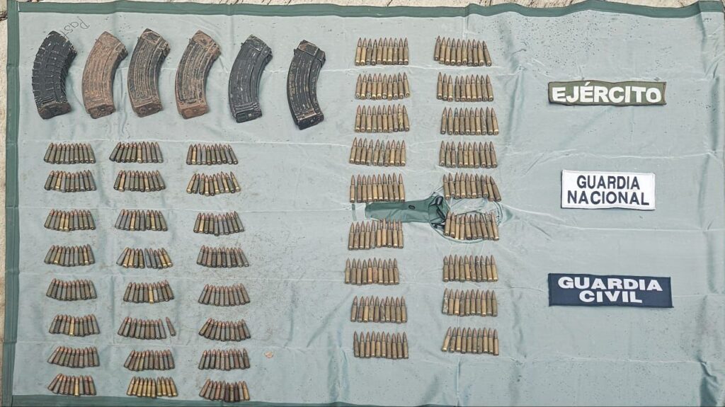 Fue en la localidad de Los Hornos de esta demarcación, donde los elementos de la Guardia Civil, el Ejército Mexicano y la Guardia Nacional aseguraron a la persona en mención junto a un automóvil de la marca Volkswagen con reporte de robo, 420 cartuchos útiles y seis cargadores.