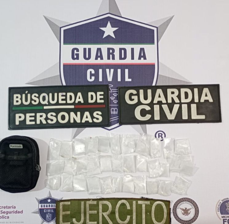 Morelia, Michoacán, 22 de octubre del 2025.- Durante el operativo Blindaje Morelia, personal de la Secretaría de Seguridad Pública (SSP), en coordinación con la Secretaría de la Defensa Nacional (Defensa), detuvieron a una mujer en portación de 35 envoltorios que contenían sustancia granulosa con las características propias de la metanfetamina.