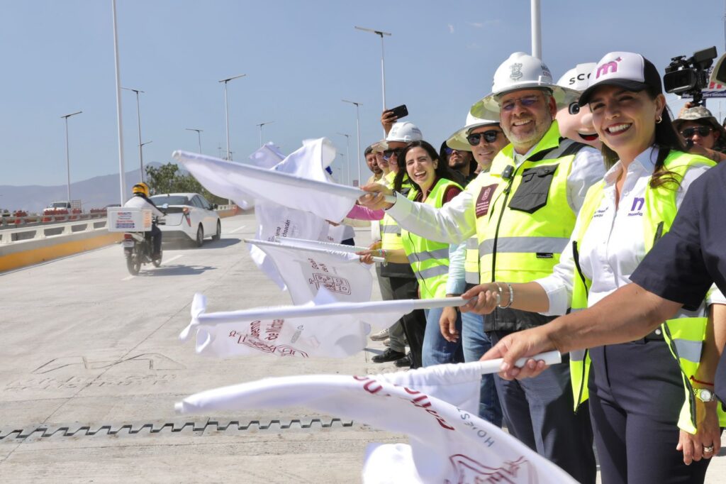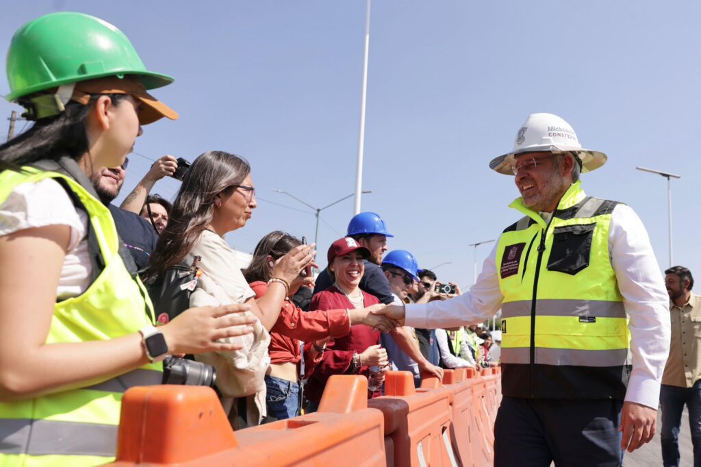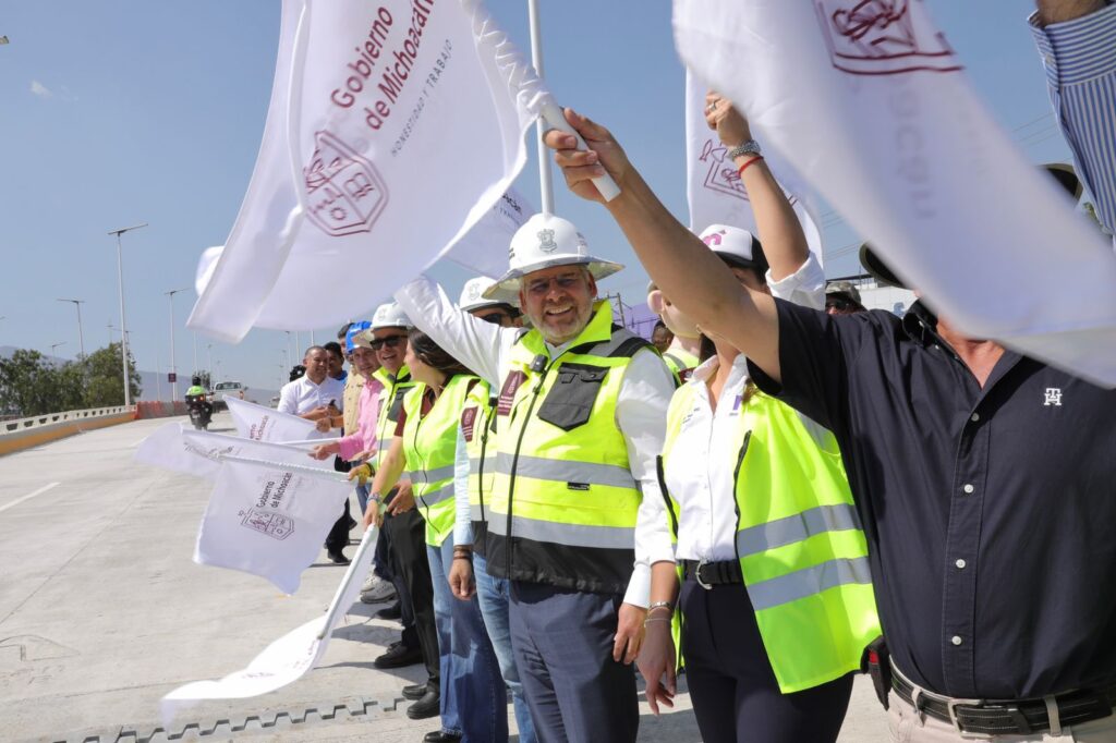 Morelia, Michoacán, 19 de febrero de 2026.- Luego de cinco meses de construcción, el gobernador Alfredo Ramírez Bedolla abrió a la circulación el puente norte del distribuidor vial Eréndira, ubicado en las inmediaciones del Mercado de Abastos, con el cual, esta obra de infraestructura tiene ya flujo vehicular en ambos sentidos para beneficio diario de 392 mil personas.