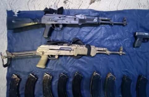 En el hecho detuvieron a dos hombres y una mujer, a quienes les decomisaron dos armas largas calibre 7.62X39 milímetros, un arma corta calibre .9 milímetros, 539 cartuchos útiles, 23 cargadores y una camioneta marca Ford; mismos que fueron puestos a disposición de la autoridad correspondiente.