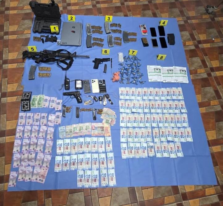 Entre los vehículos se encontraban cuatro motocicletas, un Slingshot, una camioneta de la marca GMC y una más de la marca Dodge. Las armas aseguradas correspondían a los calibres 5.56 mm. y 9mm.